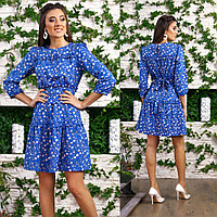 Романтичное платье в маленький цветочек с поясом в комплекте, отделано рюшечками