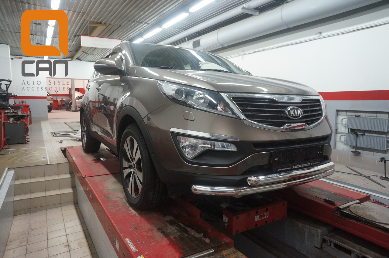 Защита переднего бампера Kia Sportage (Киа Спортаж) (2010-2016) (двойная) d 60/60*(кенгурин|кенгурятник|навесное оборудование|защита бампера|обвес - Киа Кия Спортаж Спортейдж Спортадж 3 \)Обвес (защита бампера, кенгурин) - это внешний аксессуар, защищающий бампер от повреждений при небольших столкновениях, например с другим автомобилем в пробке, или с кенгуру, внезапно выпрыгнувшим вам под колеса.