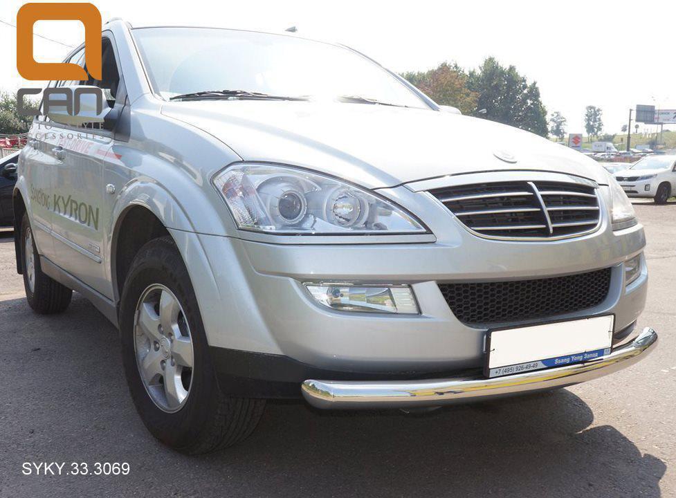 Защита переднего бампера Ssang Yong Kyron (Ссанг Йонг Кайрон) (2006-) (одинарная) d 76*(кенгурин|кенгурятник|навесное оборудование|защита бампера|обвес - Ссанг Санг Йонг Кайрон Курон \)Обвес (защита бампера, кенгурин) - это внешний аксессуар, защищающий бампер от повреждений при небольших столкновениях, например с другим автомобилем в пробке, или с кенгуру, внезапно выпрыгнувшим вам под колеса.