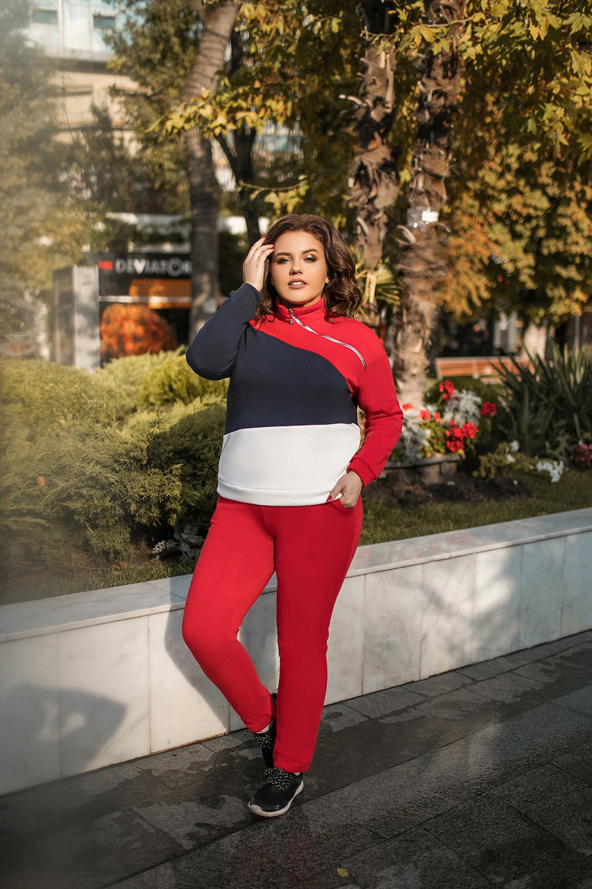 Молодежный теплый спортивный костюм с начесом женский: штаны и кофта со змейкой на вороте, большие размеры - фото 1 - id-p10104721