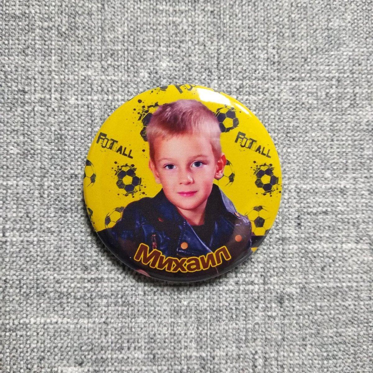 Металевий значок із шпилькою діаметром 50 мм або 58 мм з Вашою фотографією.