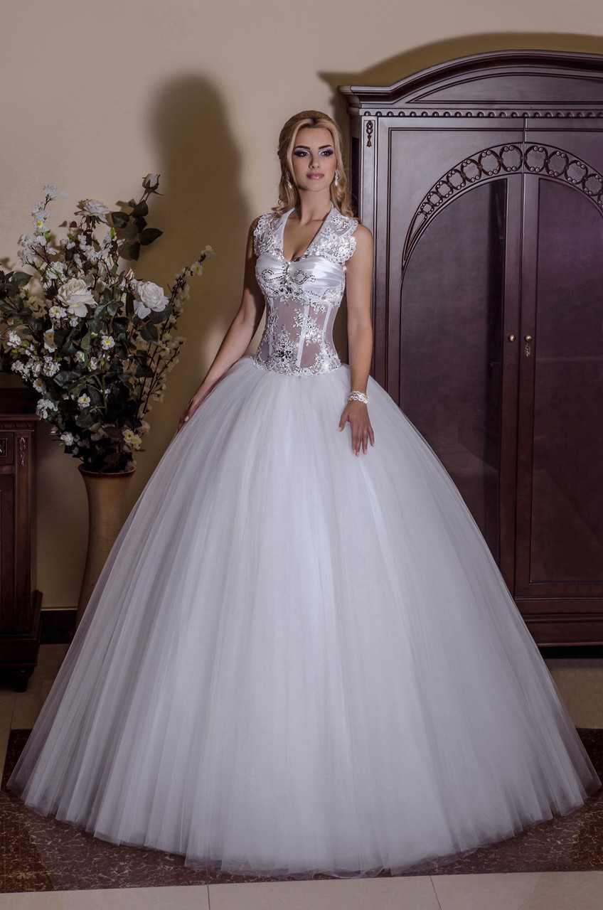 Размер/Обхват груди: 40/80, 42/84, 44/88, 46/92, 48/96, 50/100, 52/104, 54/108, 56/112, 58/116 В жизни каждой женщины одно торжество должно быть обязательно – это свадьба. И именно на нем она должна не только чувствовать себя королевой бала, но и выглядеть, как богиня. Свадебные платья, вот что делает всех невест необыкновенно красивыми в этот замечательный день. Тенденции свадебной моды этого сезона акцентируются на простоте кроя и изысканности платья для невесты. Свадебные салоны представляют подвенечные платья, которые воплощают в себе сдержанность силуэта, нежность и в то же время утонченную роскошь. Все большей популярностью у невест пользуются свадебные платья в с подолом, сшитым в виде каскада ниспадаюшей ткани с отделкой из тончайшего кружева или струящегося блестящего шелка. Выбирайте свое единственное и неповторимое платье, и будьте королевой своего свадебного бала.