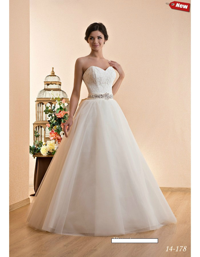 Свадебное платье Модель 14-178. Чудесное свадебное платье с пышной фатиновой юбкой и кружевным корсетом-сердечком. Платье по талии украшено стразовым поясом.