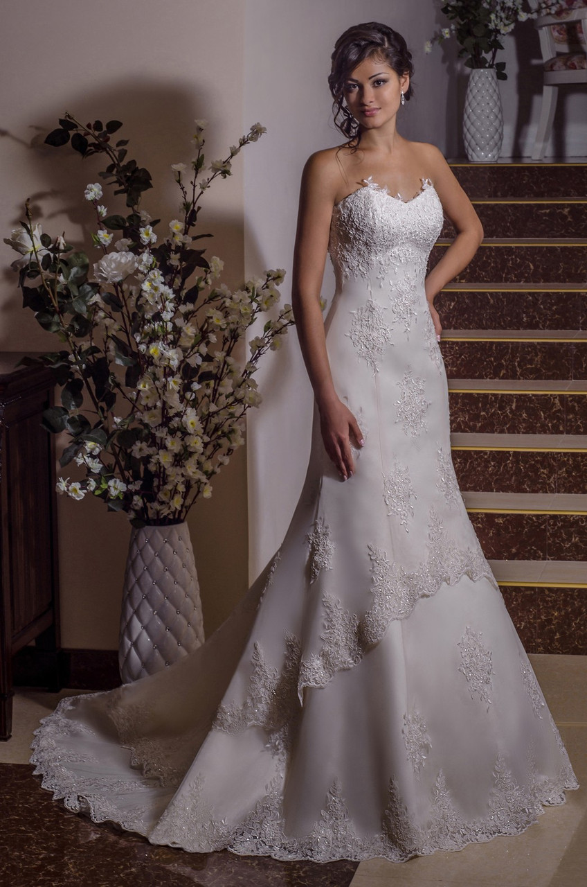 Размер/Обхват груди: 40/80, 42/84, 44/88, 46/92, 48/96, 50/100, 52/104, 54/108, 56/112, 58/116 В жизни каждой женщины одно торжество должно быть обязательно – это свадьба. И именно на нем она должна не только чувствовать себя королевой бала, но и выглядеть, как богиня. Свадебные платья, вот что делает всех невест необыкновенно красивыми в этот замечательный день. Тенденции свадебной моды этого сезона акцентируются на простоте кроя и изысканности платья для невесты. Свадебные салоны представляют подвенечные платья, которые воплощают в себе сдержанность силуэта, нежность и в то же время утонченную роскошь. Все большей популярностью у невест пользуются свадебные платья в с подолом, сшитым в виде каскада ниспадаюшей ткани с отделкой из тончайшего кружева или струящегося блестящего шелка. Выбирайте свое единственное и неповторимое платье, и будьте королевой своего свадебного бала.