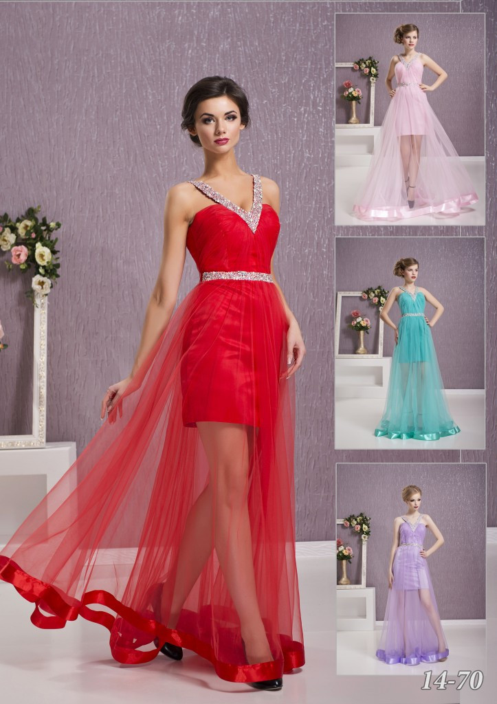Вечернее платье "Ариэль". Вечернее платье с прозрачной длинной юбкой отороченной по низу атласной лентой в цвет. Платье украшено атласным поясом и V-образной бретелью через шею.