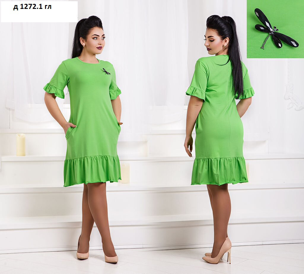 Платье батальное модель №д1272.1 размеры 46-48(1),50-52(2),54-56(3), ткань - вискоза турецкая стрейчевая х/б хлопок, цвет-трава, синий
