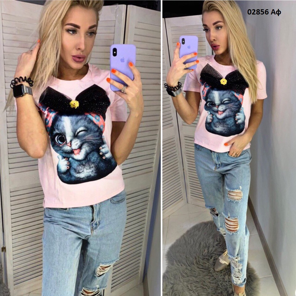 Футболка -производство Китай №02856 Размеры: 42-46 Ткань -трикотаж-очень хорошего качества Цвета-розовый,белый,черный,красный