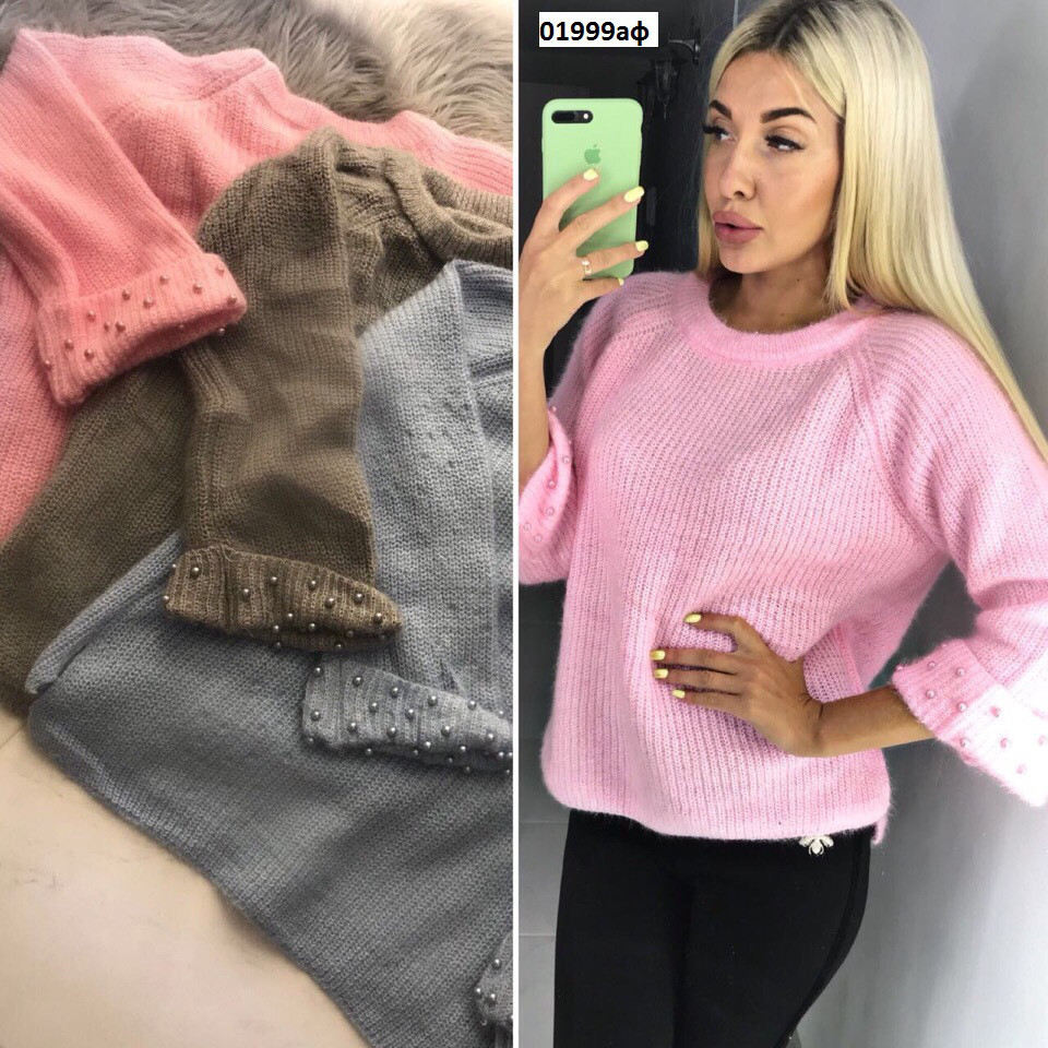 Свитер с нашитым жемчугом-производство Китай №01999 Размеры: 42-46 Ткань -вязка-очень хорошего качества Цвета-розовый,серый,голубой