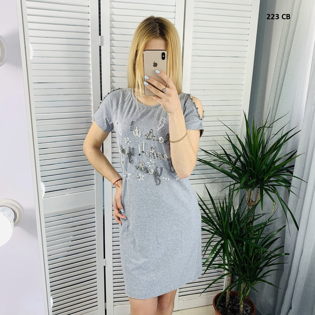 Платье женское трикотажное размеры С-М Л-ХЛ все камни пришиты пр-во Турция цвета : хаки , серый