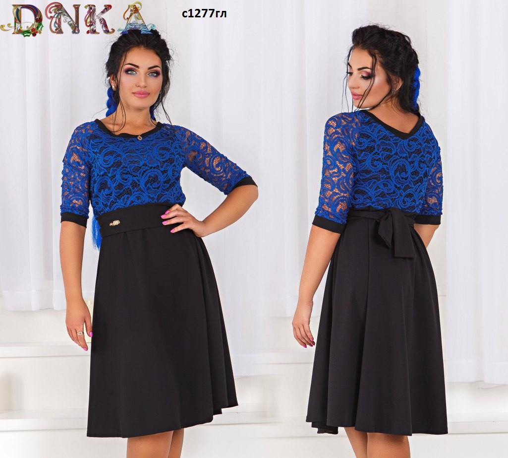 Платье вечернее с1277гл Р-50,52,54,56, Ткань - лиф - Стречевый гипюр, подкладка лифа - стрейчевый трикотаж, Юбка-Французский трикотаж, Фурнитура с камнями на поясе, Цвет- черный+беж, черный+электрик