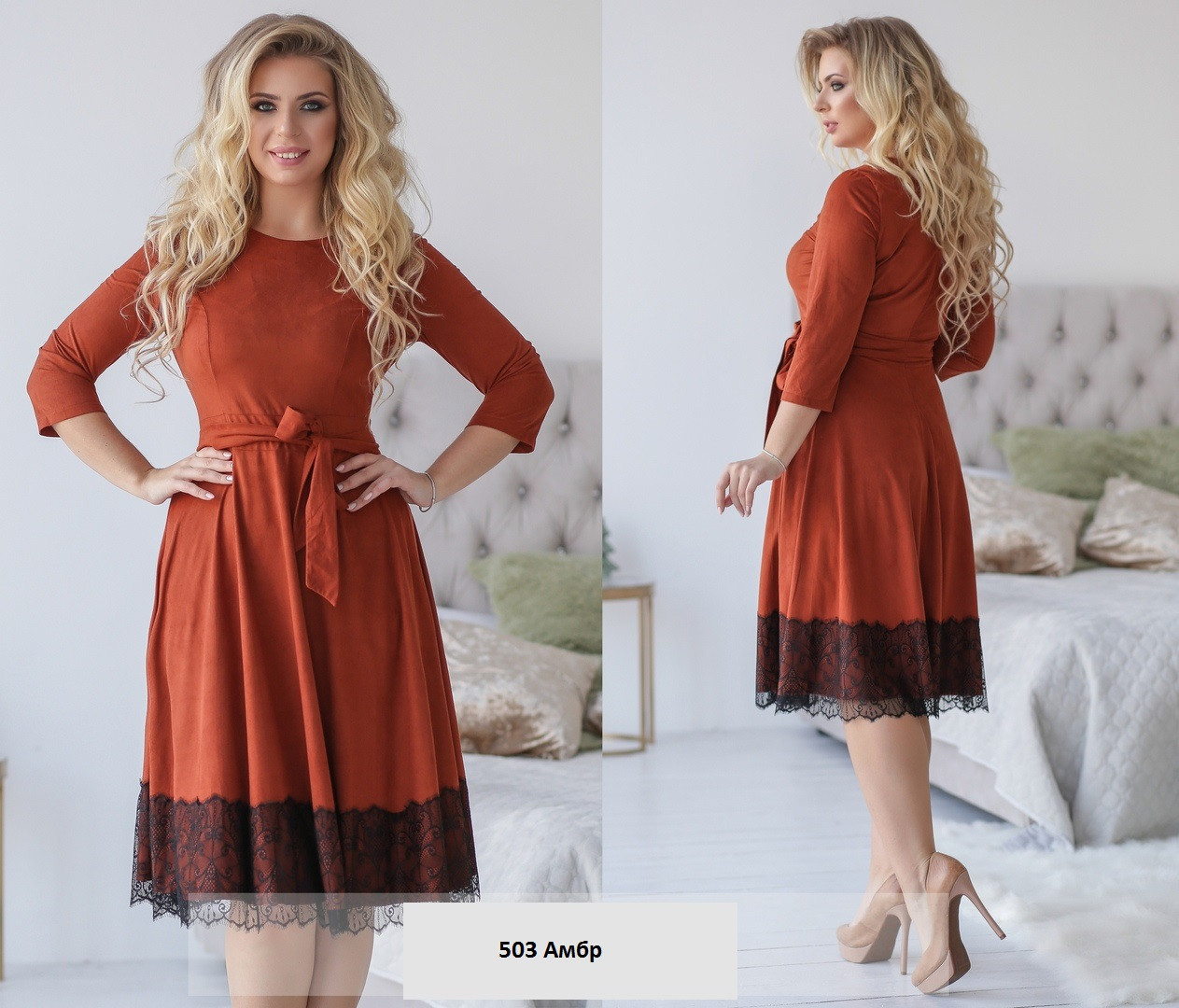 Замшевое женское платье батал 503 Амбр - фото 1 - id-p10141772