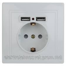 Intro Plano Розетка+USB, IP20, СУ, белый 1-410-01