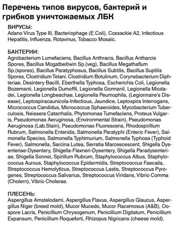 Под воздействием ультрафиолетового излучения бактерицидной лампы погибают 99% микробов, вирусов и бактерий.