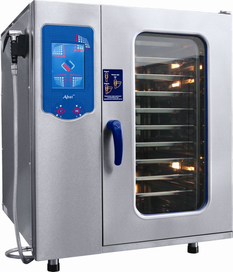 Пароконвектомат Abat ПКА 10-1/1ВМ предназначен для обжаривания, приготовления на пару, бланширования, запекания и других видов тепловой обработки продуктов на предприятиях общественного питания и торговли. Оборудование заменяет сразу несколько видов приборов: плиту, конвекционную печь, жарочный шкаф, духовку, опрокидывающуюся сковороду, пищеварочный котел, фритюрницу и др. Приготовленные в пароконвектомате блюда сохраняют все полезные вещества. Модель оснащена подсветкой, легкосъемным жировым фильтром, душем для мойкии дверью с двойным остеклением.