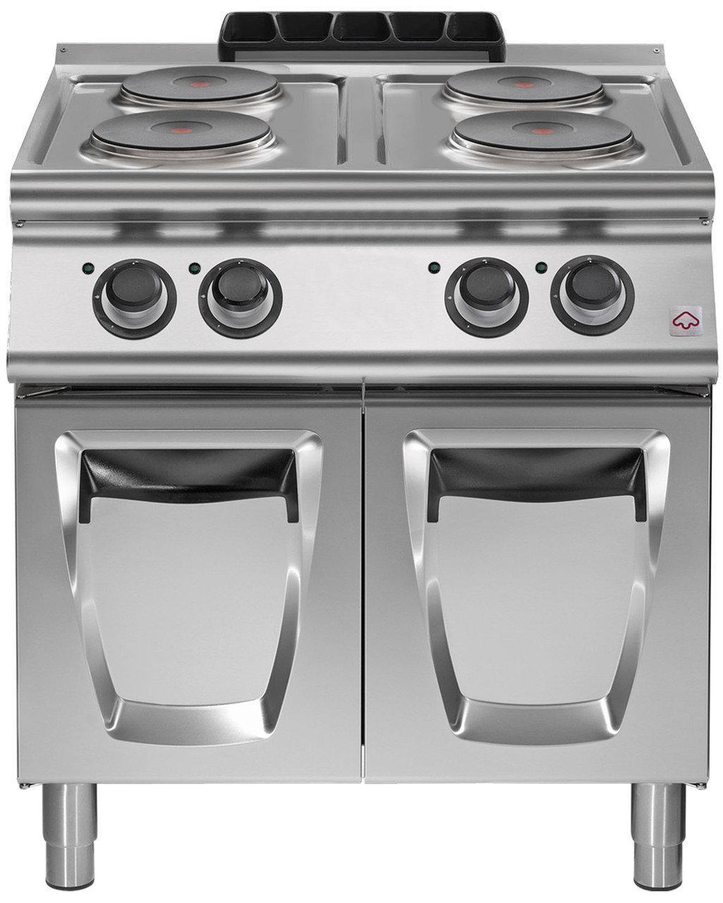 Плита электрическая, с цельной варочной поверхностью на 4 зоны нагрева, мощьность каждой зоны 3,4 кВт, гигиеническое исполнение топа, толщина метала на топе 3 мм, на закрытой базе, влагозащита IPX5, регулируемые по высоте ножки, материал исполнения пищевая нерж.сталь.