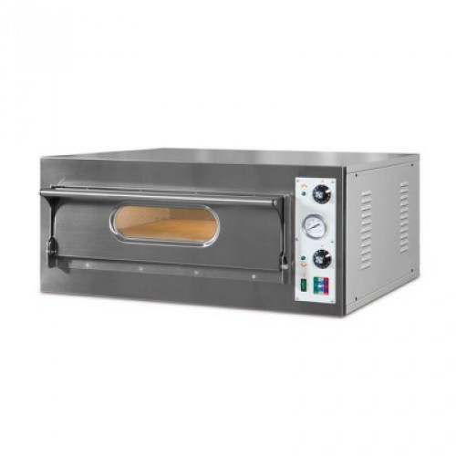 Печь для пиццы Euromaster RESTO 4 c электромеханическим управлением имеет переднюю панель из нержавеющей стали, корпус - из крашенной стали. Внутренний размер одной камеры позволяет поместить в нее 4 пиццы диаметром до 330мм. Мощность верхнего и нижнего ТЭНов в камере по 2350Вт. Камера имеет регулировку температуры от +60 до +500°С. Дно камеры выложено огнеупорным камнем. Печь оснащена внутренней подсветкой, жаропрочным смотровым окном в дверце, 2 термостата для камеры.