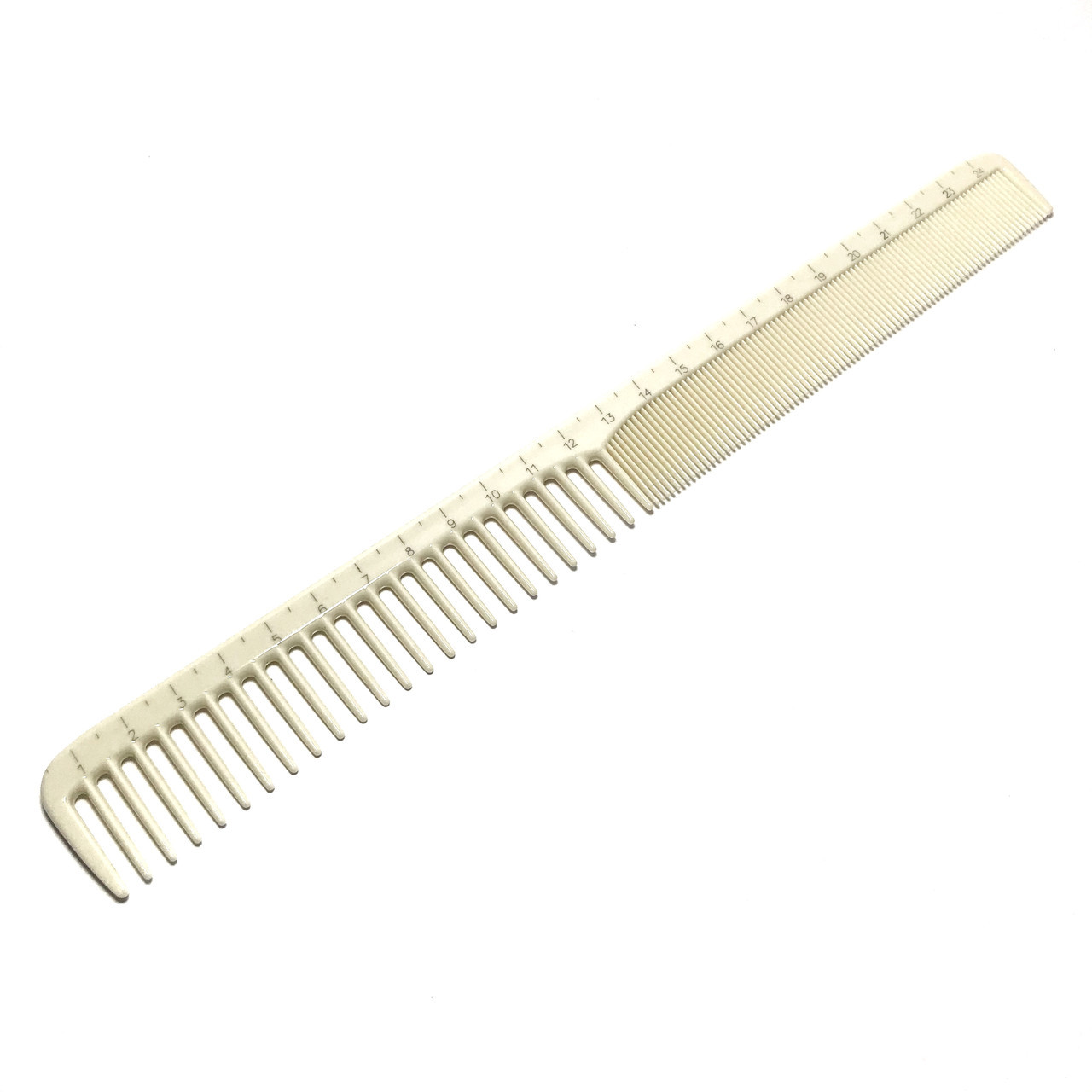 Многофункциональная расчёска для стрижки. Для высшей точности работы на обушок нанесена разметка, позволяющая измерить точную длину обрабатываемого участка пряди в сантиметрах. . Особый состав высокотехнологичного пластика, делает эти расчёски очень прочными, гибкими, упругими, невосприимчивыми к химическим веществам, применяемым в парикмахерских, и термостойкими - до 220 градусов по Цельсию.