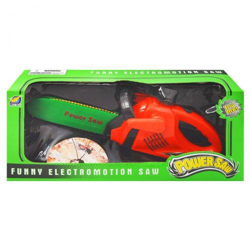Яркая пластиковая бензопила "Power Saw". Оснащена подвижной ручкой, реалистичными звуками работы инструмента и подсветкой. Во время работы бензопилы - вращается цепь. Работает на батарейках (не идут в комплекте).