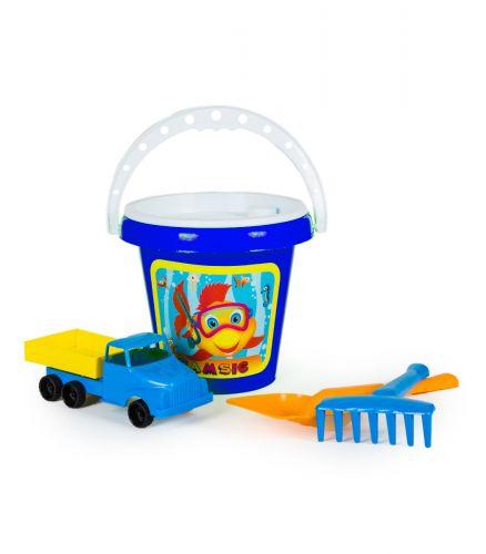 Песочный набор "Классик №4". В набор входит: ведро с ситом, грабли, лопатка, машинка и пасочкаи. Подходит для игры дома, на улице, в саду и на пляже. Размер лопатки - 25 см, грабелек - 20 см, размер пасочки - 9 х 8,5 см, ведро -18 х 18 х 17 см, машинка грузовик с откидным кузовом - 17,5 х 6,5 х 7 см.