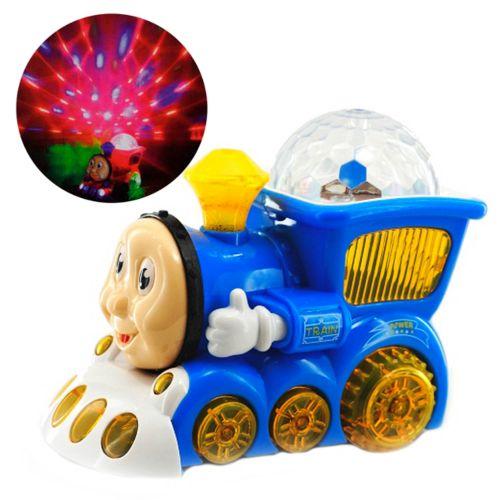 Музыкальный паровоз "Паровозик Томас" с ярким проектором. Ездит, издает характерные звуки паровоза, освещает комнату разноцветными огоньками проектора.