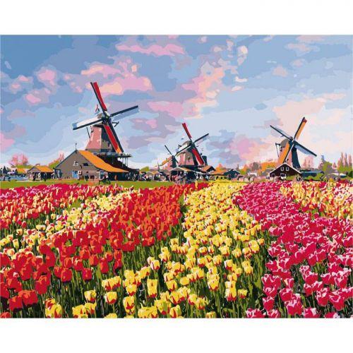 Картина по номерам "Красочные тюльпаны Голландии". Для того, чтобы нарисовать картину, необходимо рисовать по пронумерованным контурам, которые соответствуют цвету краски. В наборе: натуральный холст на подрамнике с галерейной натяжкой, бумажная копия с контурным рисунком картины (на картине нанесена схема контуров изображения с нумерацией), 3 нейлоновые художественные кисти, палитра акриловых красок в контейнерах, крепление. Все необходимые краски уже в комплекте и не требуют смешивания. Размер: 40 х 50 см. Количество цветов: 29. Сложность - ★★★★.