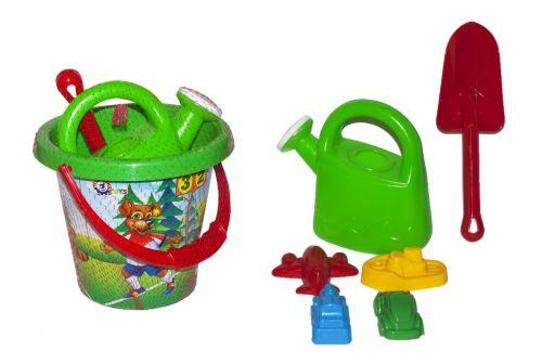 Ведро с песочным набором 4 подходит для игры дома, на улице, в саду и на пляже. В наборе: ведро (22 х 20 х 18 см), лейка (18 х 7 х 18 см), лоратка и 4 пасочки.
