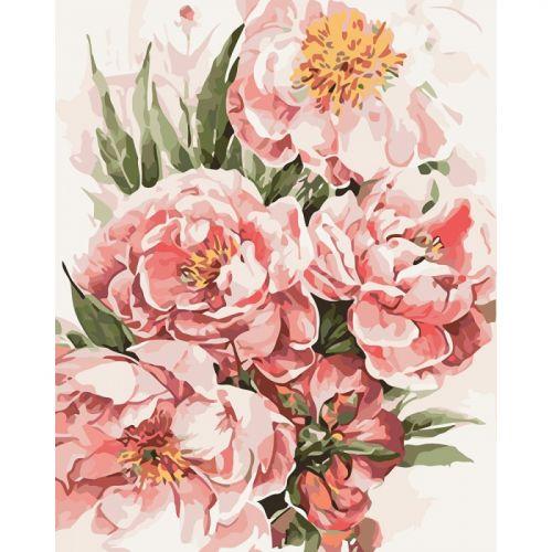 Картина по номерам "Пионы для любимой". Для того, чтобы нарисовать картину, необходимо рисовать по пронумерованным контурам, которые соответствуют цвету краски. В наборе: натуральный холст на подрамнике с галерейной натяжкой, бумажная копия с контурным рисунком картины (на картине нанесена схема контуров изображения с нумерацией), 3 нейлоновые художественные кисти, палитра акриловых красок в контейнерах, крепление. Все необходимые краски уже в комплекте и не требуют смешивания. Размер: 40 х 50 см. Количество цветов: 26. Сложность - ★★★.