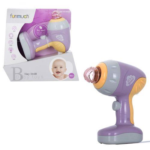 Музыкальная игрушка в виде дрели. Имеет кнопку вкл/выкл, подсветку и звуковые эффекты, имитирующие звуки работы инструмента, которые звучат, если удерживать кнопку. Передняя часть дрели вращается вручную. Работает на батарейках (идут в комплекте).