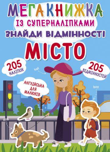 Книга с наклейками "Найди отличия". Малышу уже многое известно о городе. На разворотах этой книжки он увидит знакомые места: улицу, магазин, зоопарк, площадь. Однако на каждом рисунке чего-то не хватает. Нужно внимательно рассмотреть две похожие картинки, найти между ними отличия и устранить их, дополнив рисунок наклейками. Книга развивает мелкую моторику, внимание и логическое мышление, она познакомит ребёнка с английскими словами и поможет их выучить, а 205 наклеек подарят малышу много часов увлекательного досуга. 10 страниц. Мягкая обложка. Язык: украинский.