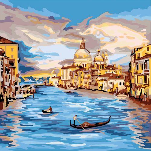 Картина по номерам "Прогулка по реке". Для того, чтобы нарисовать картину, необходимо рисовать по пронумерованным контурам, которые соответствуют цвету краски. В наборе: натуральный холст на подрамнике с галерейной натяжкой, бумажная копия с контурным рисунком картины (на картине нанесена схема контуров изображения с нумерацией), 2 нейлоновые художественные кисти, палитра акриловых красок в контейнерах. Все необходимые краски уже в комплекте и не требуют смешивания. Размер: 40 х 40 см.
