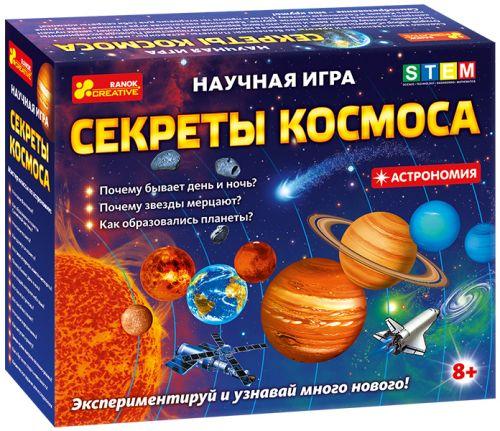 Научная игра "Секреты космоса". 7 экспериментов. Набор содержит мастер-классы: что такое Вселенная?; как образовались планеты Солнечной системы?; что такое планета?; как движутся планеты?; что такое астероиды, кометы и метеориты?; почему бывает день и ночь?; как создать звездное небо дома?; кто такие астрономы?; кто такой космонавт?; что такое аэродинамика?; как запустить ракету?; зачем нужен контроль теплового режима?; как сделать в бутылке невесомость?; что такое астероиды, кометы и метеориты?; почему бывает день и ночь?; как создать звездное небо дома?; кто такие астрономы?; кто такой космонавт?; что такое аэродинамика?; как запустить ракету?; зачем нужен контроль теплового режима?; как сделать в бутылке невесомость? Набор содержит: настольную игру «Солнечная система», наклейки, шар, пластилин, заготовку материков, деревянные палочки, защитные очки, защитные перчатки, набор конических трафаретов, клей, кисточку, белую акриловую краску, люминофор, сопло ракеты, картонные заготовки для ракеты, карточки с вопросами, трубочки, воск, картонные ракеты (черная и белая), пищевую соду, скотч, пипетку, гайку, пенопластовый блок, шлифовальную бумагу, пошаговую инструкцию.