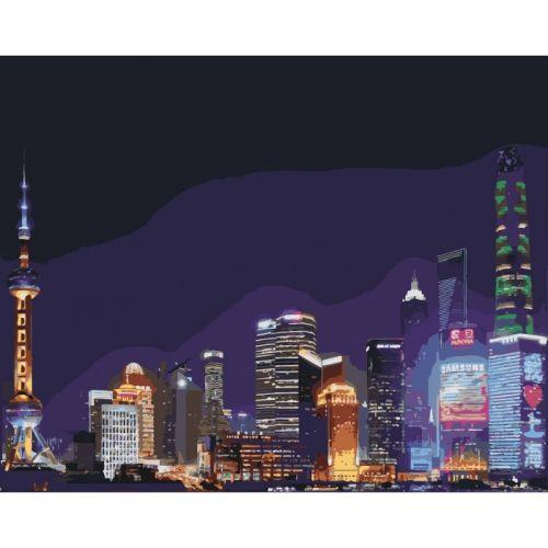 Картина по номерам "Ночной Шанхай". Для того, чтобы нарисовать картину, необходимо рисовать по пронумерованным контурам, которые соответствуют цвету краски. В наборе: натуральный холст на подрамнике с галерейной натяжкой, бумажная копия с контурным рисунком картины (на картине нанесена схема контуров изображения с нумерацией), 3 нейлоновые художественные кисти, палитра акриловых красок в контейнерах, крепление. Все необходимые краски уже в комплекте и не требуют смешивания. Размер: 40 х 50 см. Количество цветов: 30. Сложность - ★★★★★.