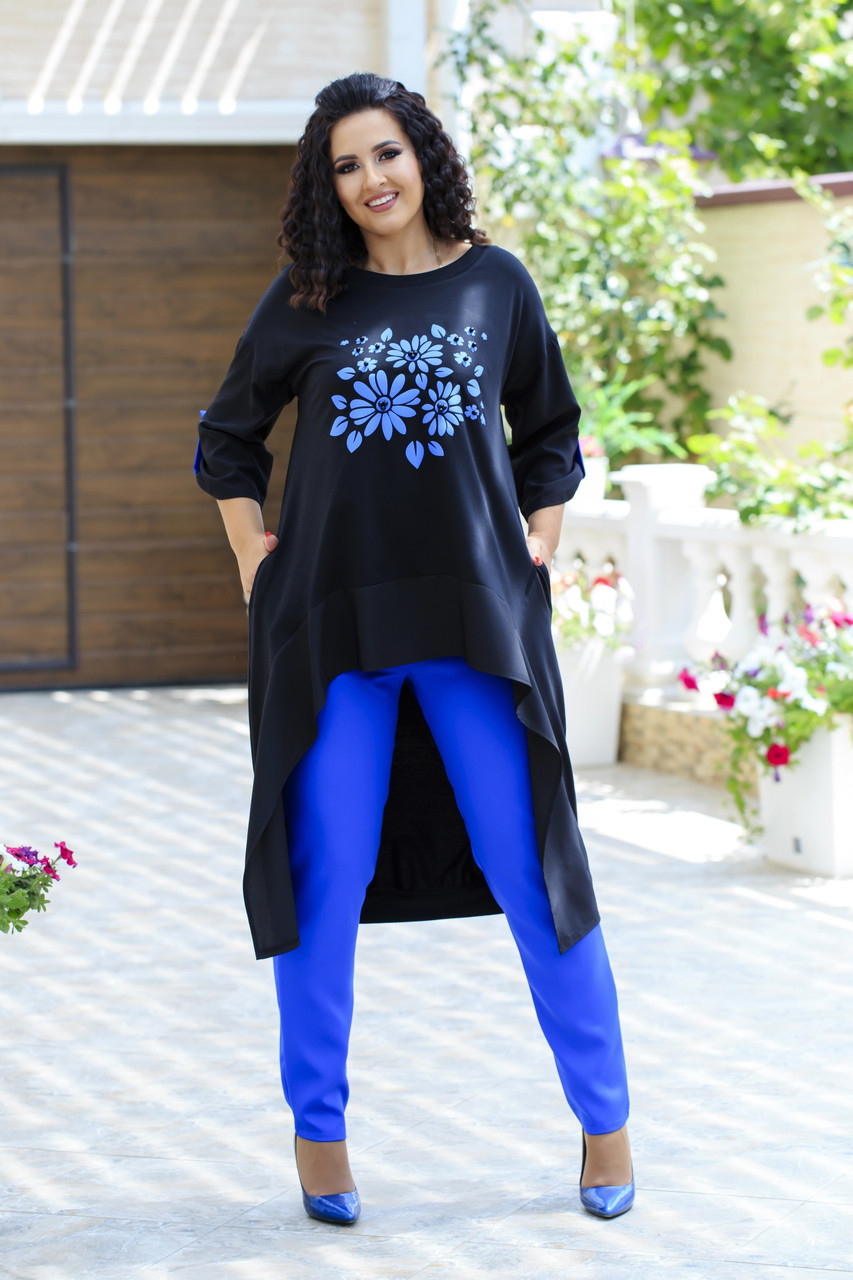 Стильный женский костюм: асимметричная туника разлетайка и брюки, супер батал большие размеры - фото 1 - id-p10411415