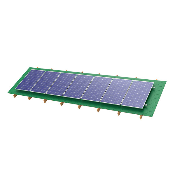 Система совместима с любыми рамными фотомодулями (толщиной 35-40 мм и шириной до 1005 мм). Комплект включает все необходимые компоненты, в том числе кровельный крепеж, направляющий профиль с соединителями, а также прижимы для фотомодулей.