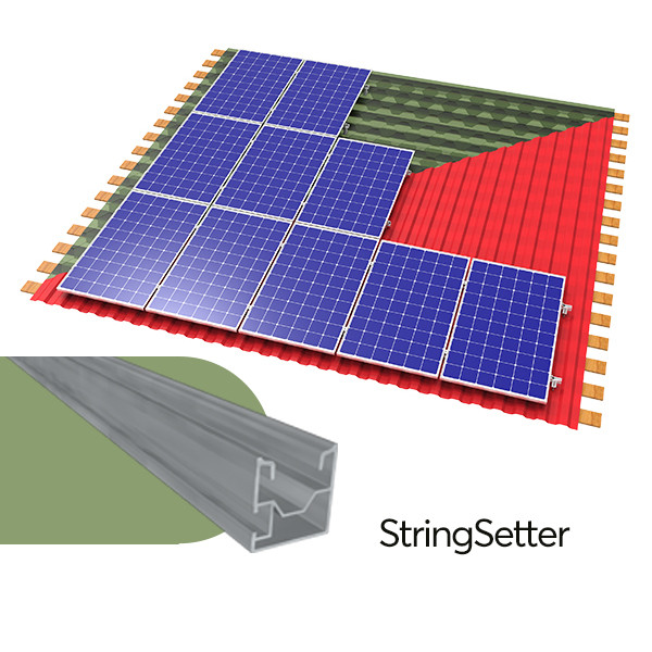 StringSetter — это универсальное решение для размещения фотоэлектрических стрингов на наклонных крышах. Это не просто крепеж для фиксации модулей на крыше, а система для разметки и монтажа целого гелиополя.