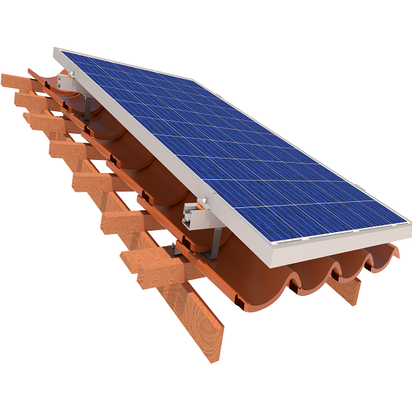 Комплект креплений StringSetter С03 специально предназначен для крепления 3 фотомодулей на наклонную кровлю из керамочерепицы.