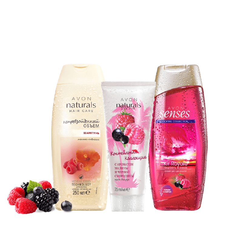 Женский Подарочный Набор AVON "Кир Рояль", всего за 67.80 грн. В Наборе: Увлажняющий Гель для Душа "Кир Рояль", 250 мл Крем для рук с ароматом малины и черной смородины, 75 мл Шампунь для волос "Непревзойденный объем. Малина и Гибискус", 250 мл