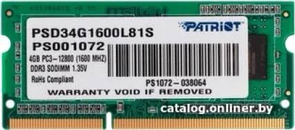 Patriot Memory for Ultrabook 4GB DDR3 SO-DIMM PC3-12800 (PSD34G1600L81S) - фото 1 - id-p10515819