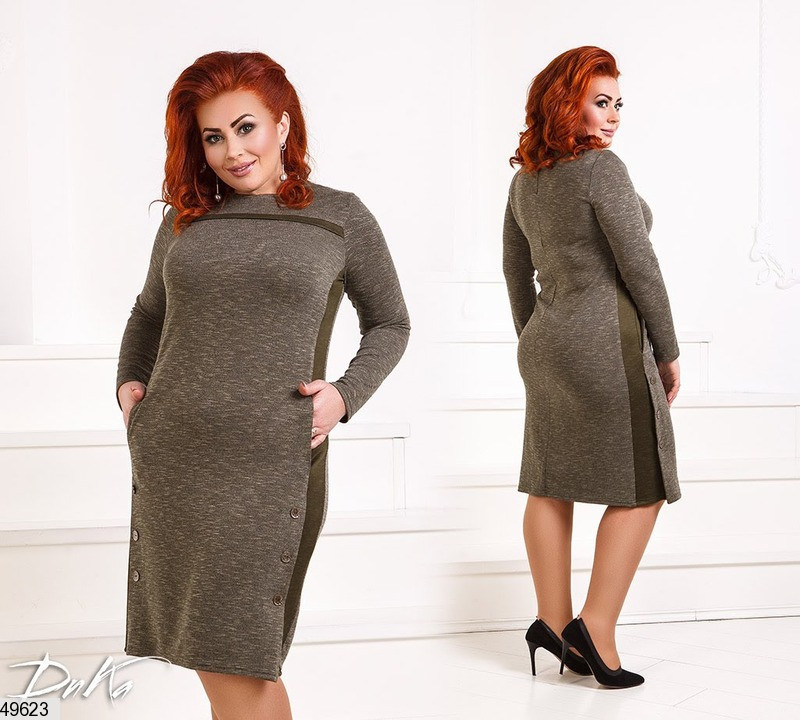 Теплое осеннее ангоровое платье приталенного силуэта с карманами, батал большие размеры - фото 1 - id-p10516124