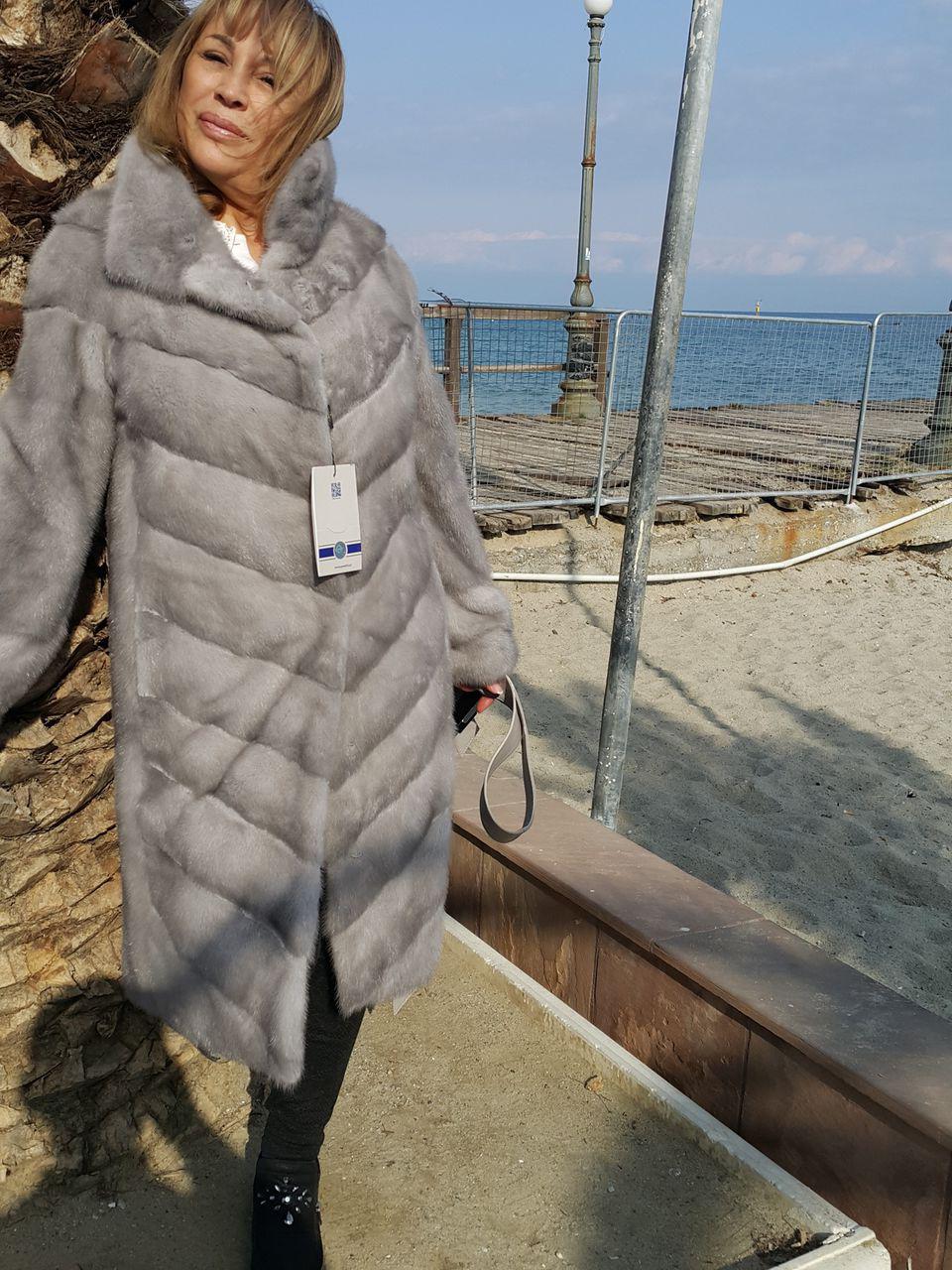 Голубая норка - редкая, потому не дешевая. Шубка сшита в Греции. Модная. Изучается спрос.