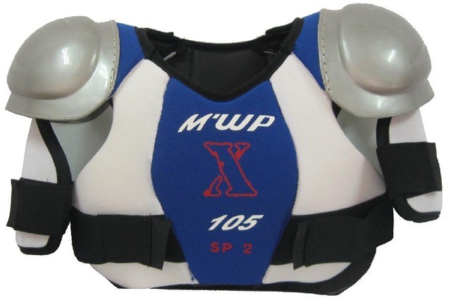 Нагрудник 105 игрока хоккей р-р 2-6 РФ. Обшитые материалом чашечки, изготовленные методом литья под давлением, отводят силу удара от плеча и обеспечивают отличную защиту в своем классе. Литой протектор битцепса. Встроенные протекторы спины и груди обеспечивают неограниченную свободу движения. Подкладка отводит влагу от тела, оставляя его сухим и прохладным. Скрытая наплечная чашечка. Дополнительная защита живота и спины.
