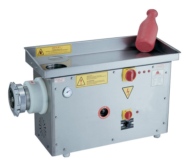 Производитель: Pimak,Турция. Новаторская мясорубка с функцией охлаждения продукта. Охлаждающая система с термоэлектрическим модулем: без компрессора;без газа; мощность термоэлектрического модуля 70Вт; охлаждение горловины для подачи и для выхода; термометр контроля. Любая операция по техническому обслуживанию не требует присутствия специалиста по холодильному оборудованию.Производительность, кг/ч - 400. Решетка, мм - 4,5. Напряжение - 380 В, Мощность - 1,5 кВт, Вес - 90 кг. Размеры, мм: 310x680x480
