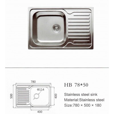 Кухонные накладные мойки "HAIBA" изготовлены из высококачественной нержавеющей стали  Т-304 класса толщиной 0.8 мм ,в состав композита входит 18:10 никель/хром ,при использовании этих технологий выплавки и спайки металлов данный товар проходит тщательный технологический осмотр знака качества и сертификацию при растаможке, как товар сан-тех бытовой продукции, кухонные мойки изготовлены по европейским стандартам размерами для стандартной базы 500, 600, 800 мм глубиной 180 мм а также  переливной воды и мусоросборной корзиной, разновидность моек трех типов сатин, полировка и микродекор сифон изготовлен из гранулированного фторопластового сырья.
