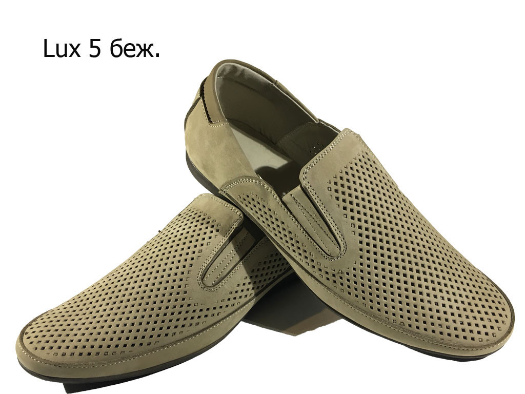 Мокасины мужские на резинке натуральная перфорированная кожа "нубук" бежевые (Люкс 5) 44 - фото 1 - id-p7811670