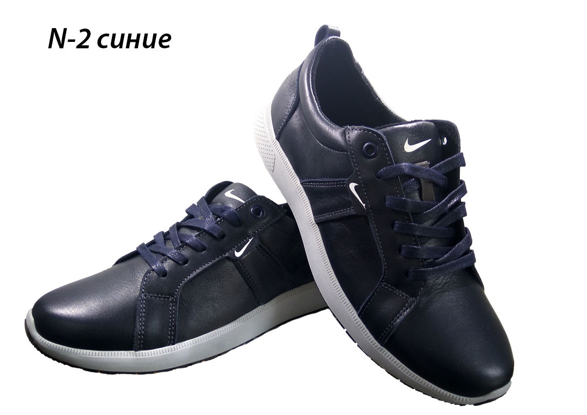 Кроссовки NIKE синие натуральная кожа на шнуровке (N-2) - фото 1 - id-p7813121