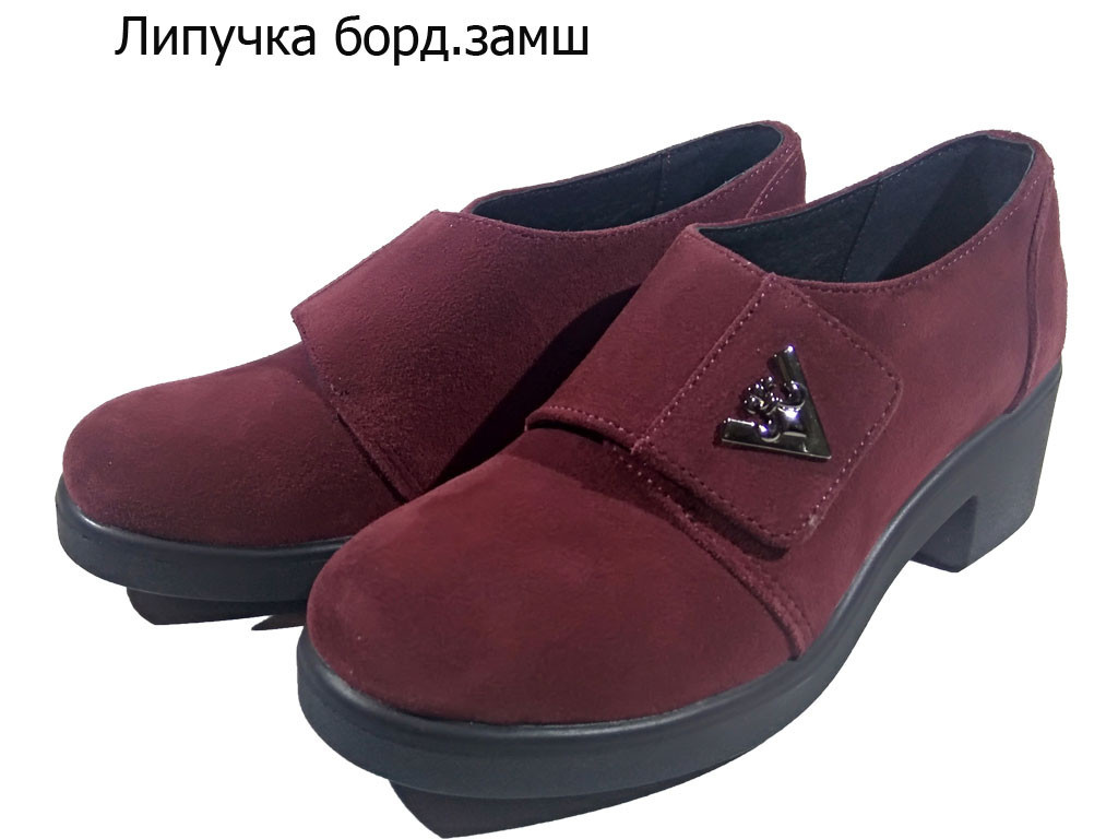 Туфли женские комфорт натуральная замша бордовые на липучке (Настя бз) 40 - фото 1 - id-p7813561