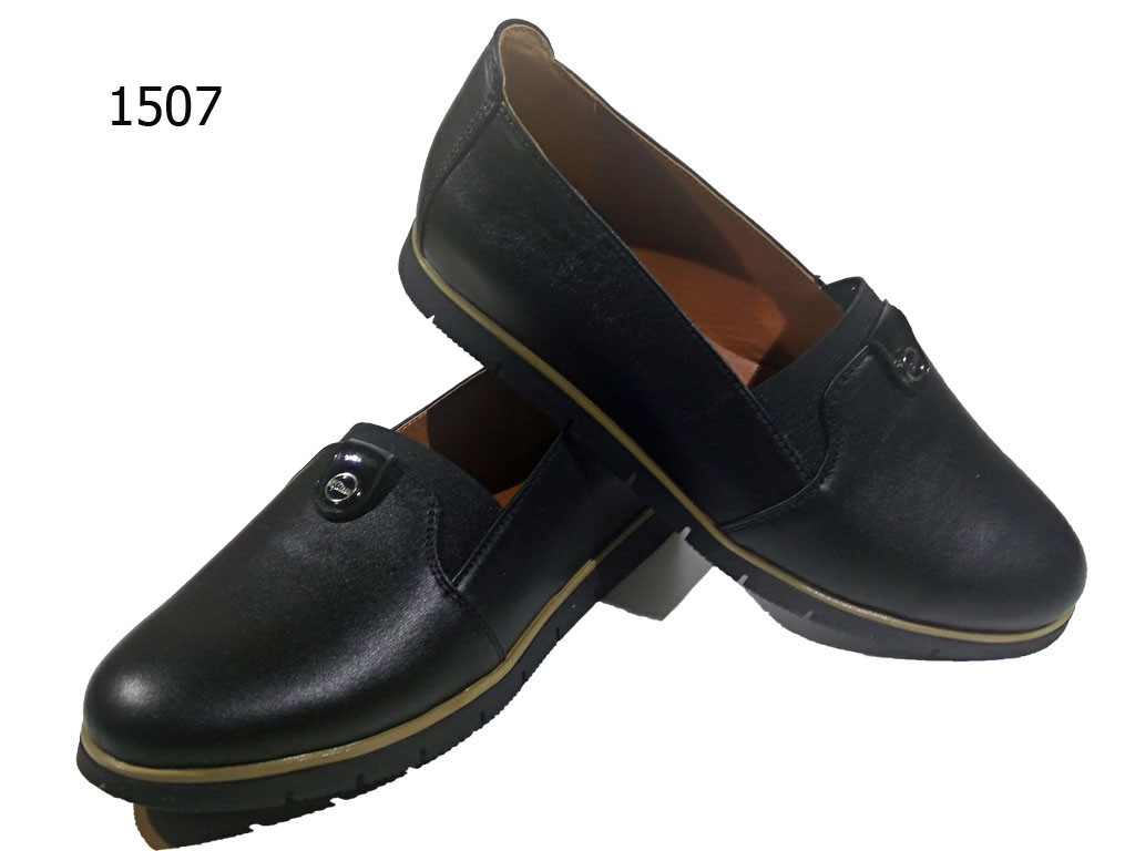 Туфли женские комфорт натуральная кожа черные на резинке (1507) 38 - фото 1 - id-p7814323
