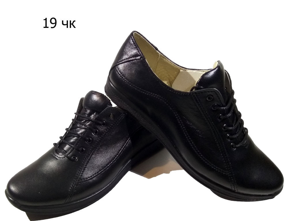 Туфли женские комфорт натуральная кожа черные на шнуровке (Н 19) 37 - фото 1 - id-p7814377