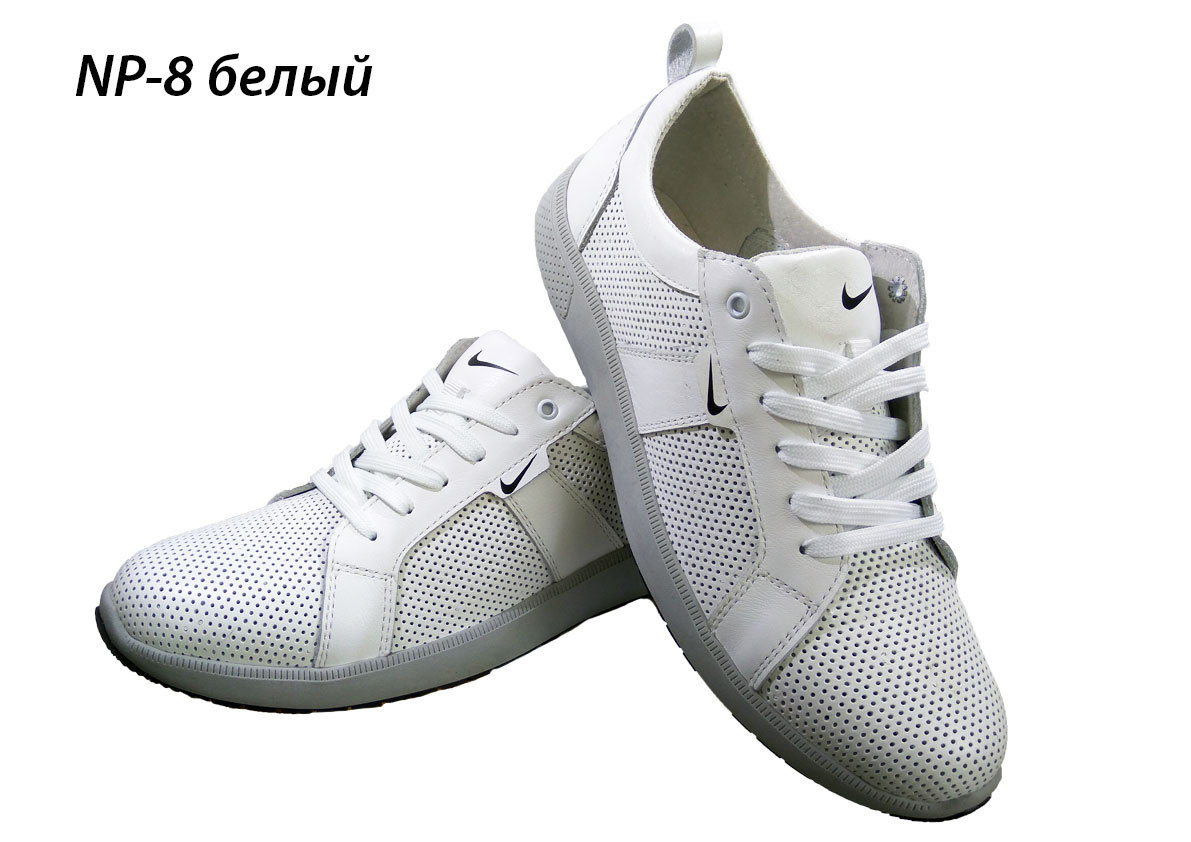 Кроссовки белые натуральная перфорированная кожа на шнуровке (NP-8) 42 - фото 1 - id-p8203129