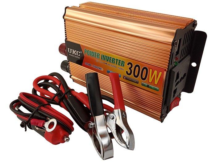 Преобразователь напряжения (инвертор) с 12 на 220 Вольт мощностью 300 Ватт позволяет подключить электронику к автомобильному аккумулятору.